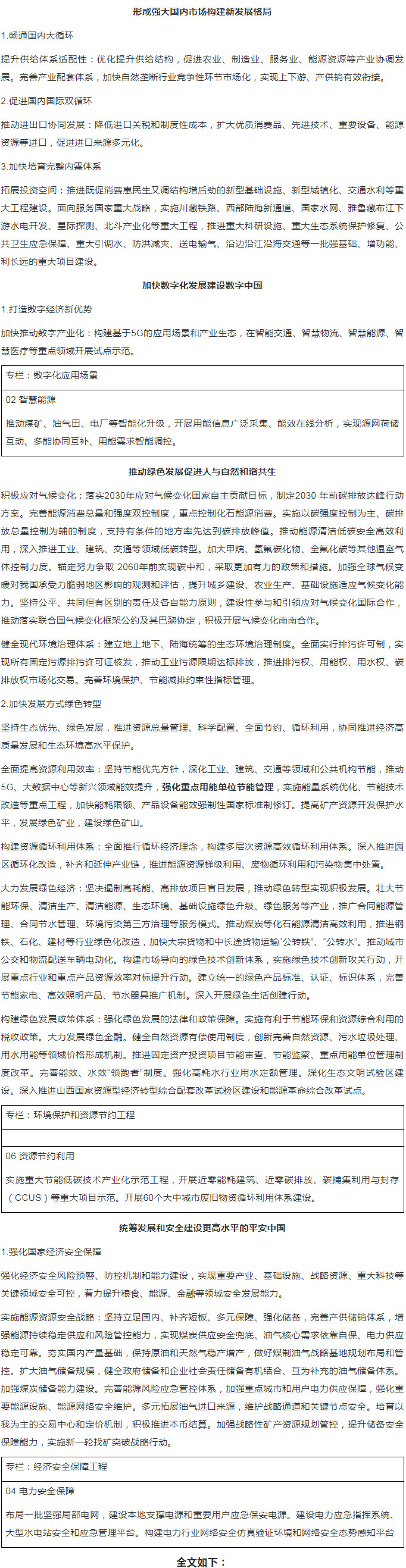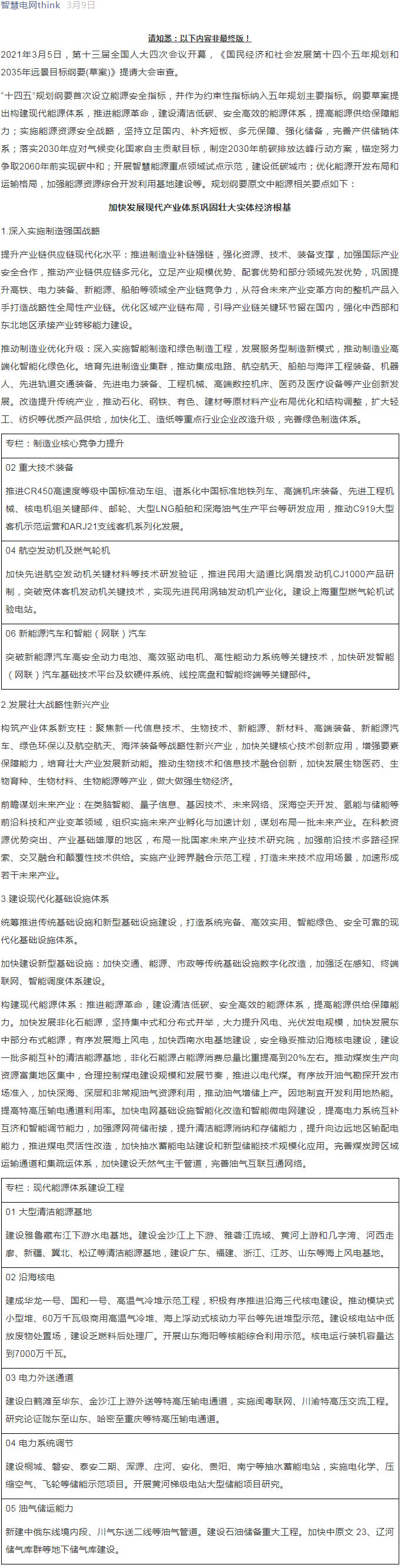 重磅发布!十四五规划和2035年远景目标纲要草案:加快电网基础设施智能化改造和智能微电网建设,提高电力系统互补互济和智能调节能力
