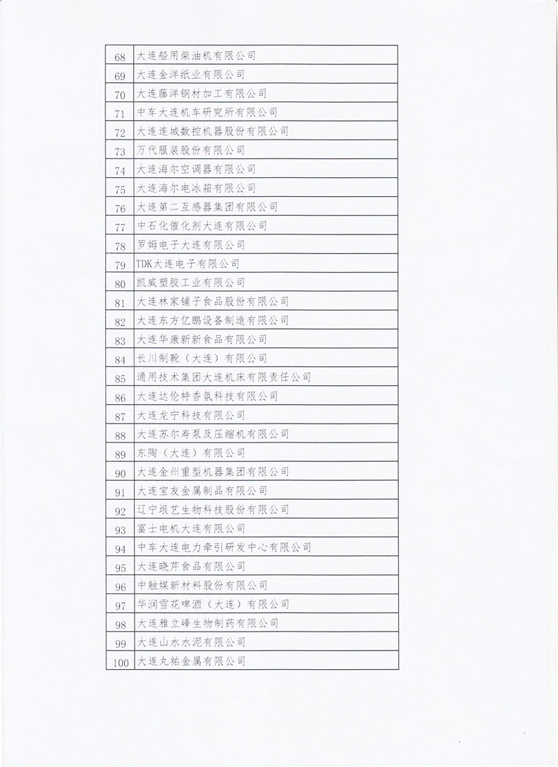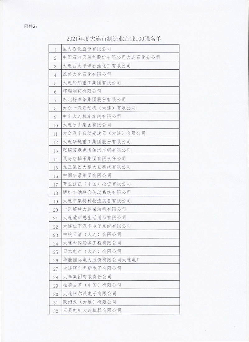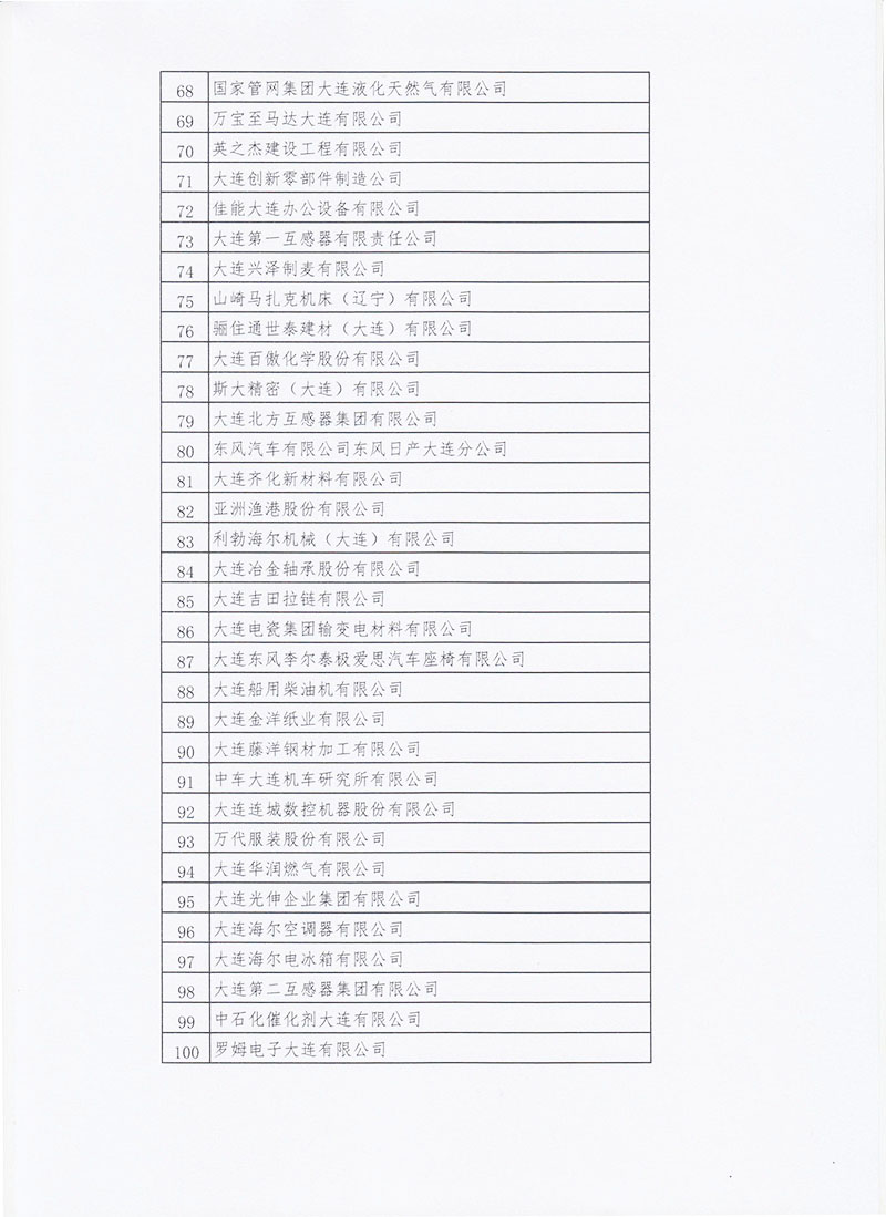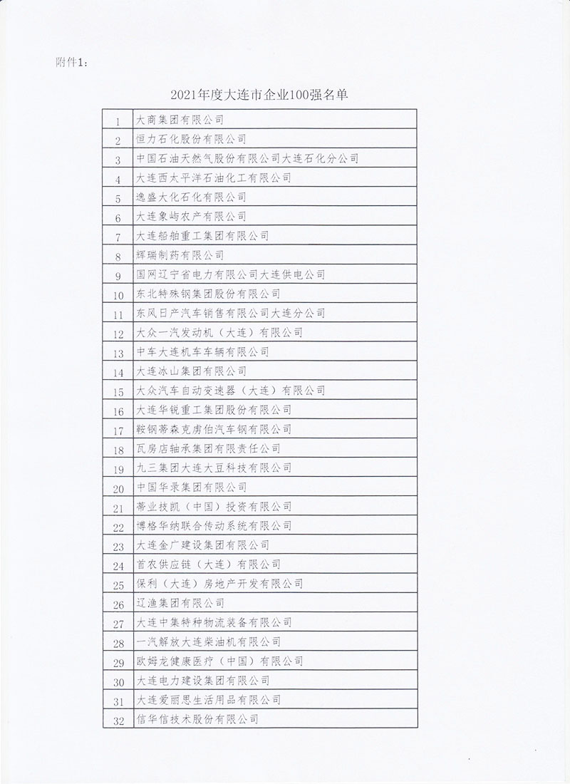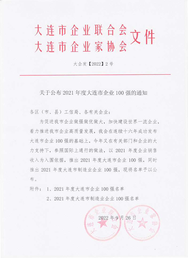 关于公布2021年度大连市企业100强的通知