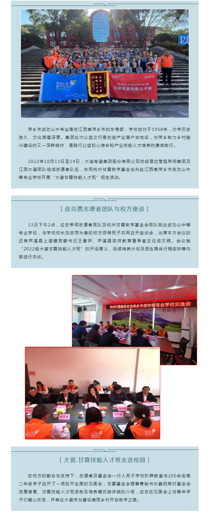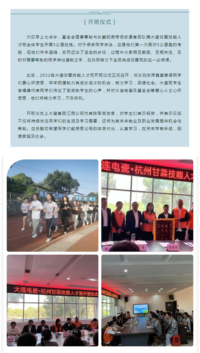 践行公益初心使命,助力萍乡乡村振兴-大瓷技能人才班公益助学在萍乡武功山中专顺利开班