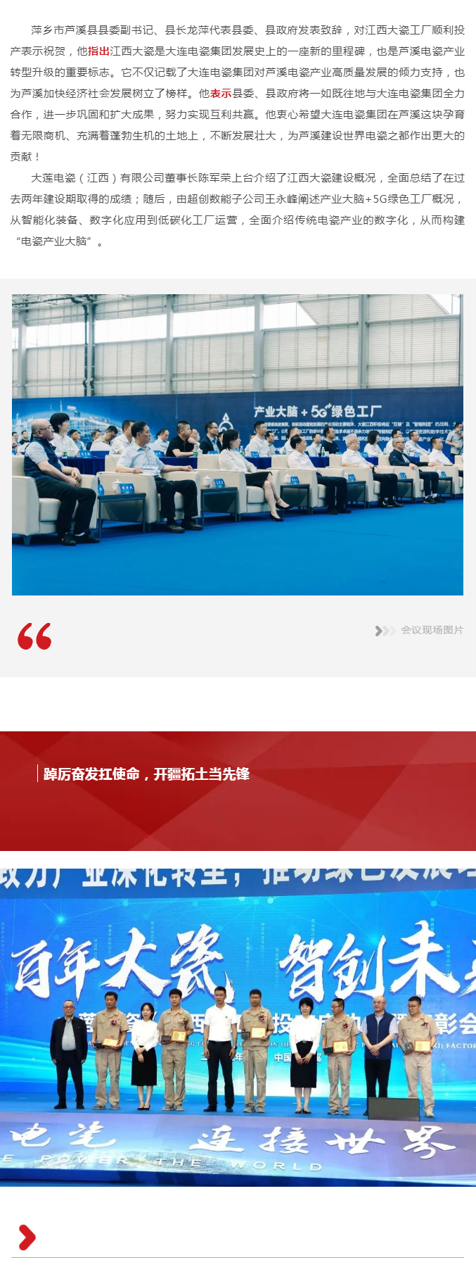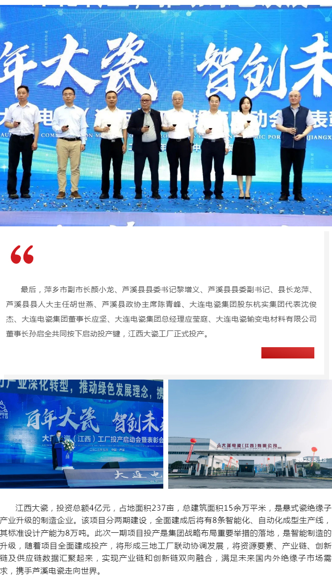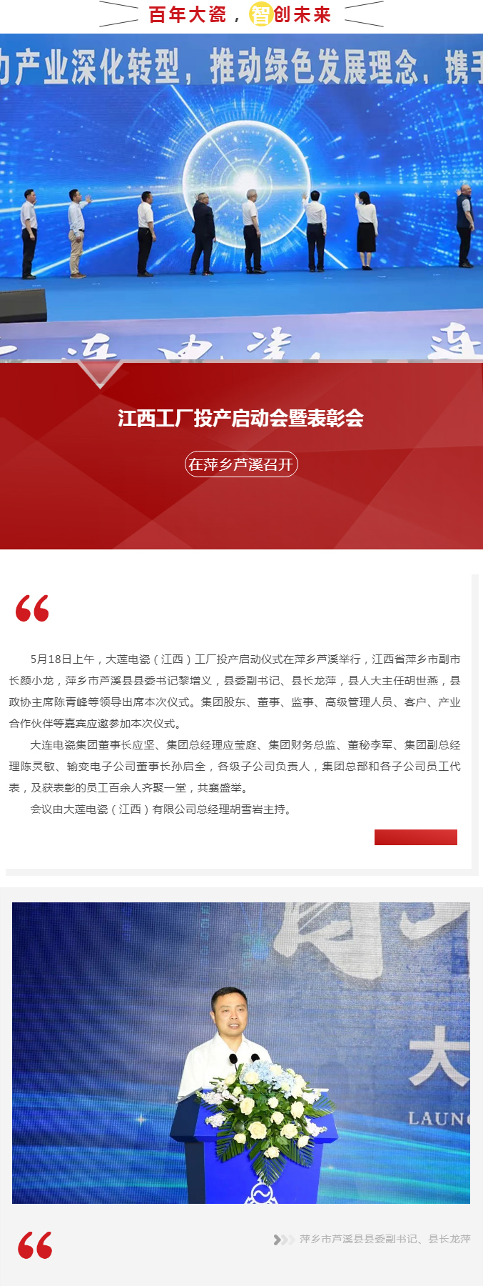 百年大瓷,智创未来——江西工厂投产启动会暨表彰会在萍乡芦溪召开